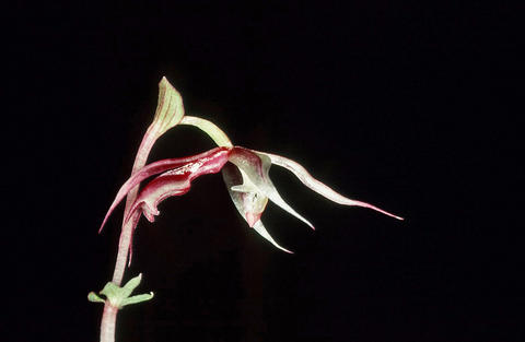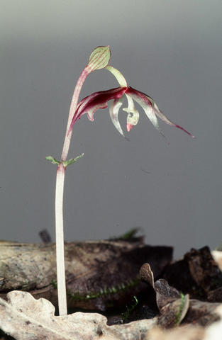 Found in southeastern New Caledonia on Mt Mou at elevations around 1100 to 1150 meters as a mini-miniature to miniature sized, cool growing terrestrial with an erect stem carrying a single, 3 to 5 lobed, rarely entire, cordate, acute to acuminate leaf that blooms in the summer on an erect, 1.6 to 2.4" [4 to 6 cm] long, 1 to 3 flowered inflorescence