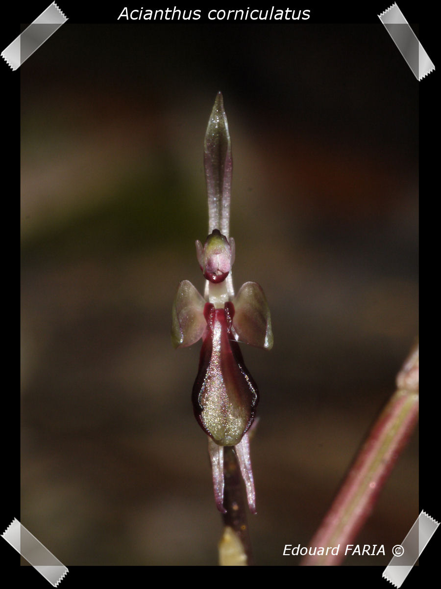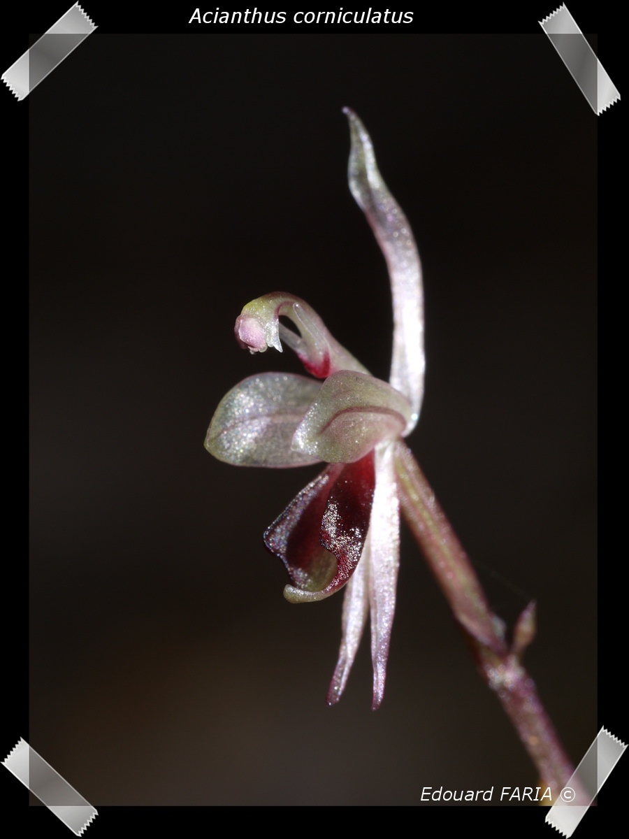 Synonyms Acianthopsis corniculata (Rendle) Szlach. 2001; Acianthopsis corniculata (Rendle) M.A.Clem. & D.L.Jones 2002; Stigmatodactylus corniculatus (Rendle) M.A.Clem. & D.L.Jones 2018; Univiscidiatus corniculatus (Rendle) Szlach. 2001