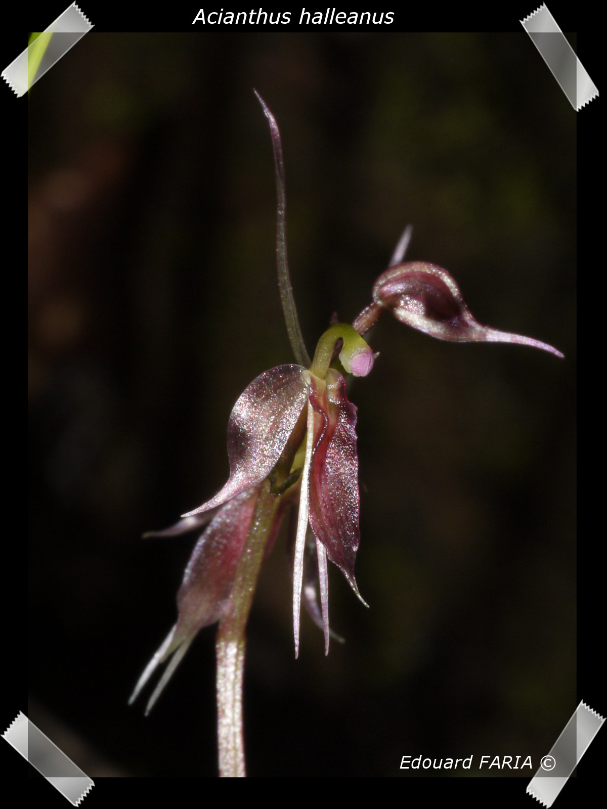 Synonyms Acianthopsis halleana ( Kores ) M.A.Clem. & D.L.Jones 2002; Acianthopsis halleana ( Kores ) Szlach. 2002; Stigmatodactylus halleanus (Kores) M.A.Clem. & D.L.Jones 2018; Univiscidiatus halleanus ( Kores ) Szlach. 2001