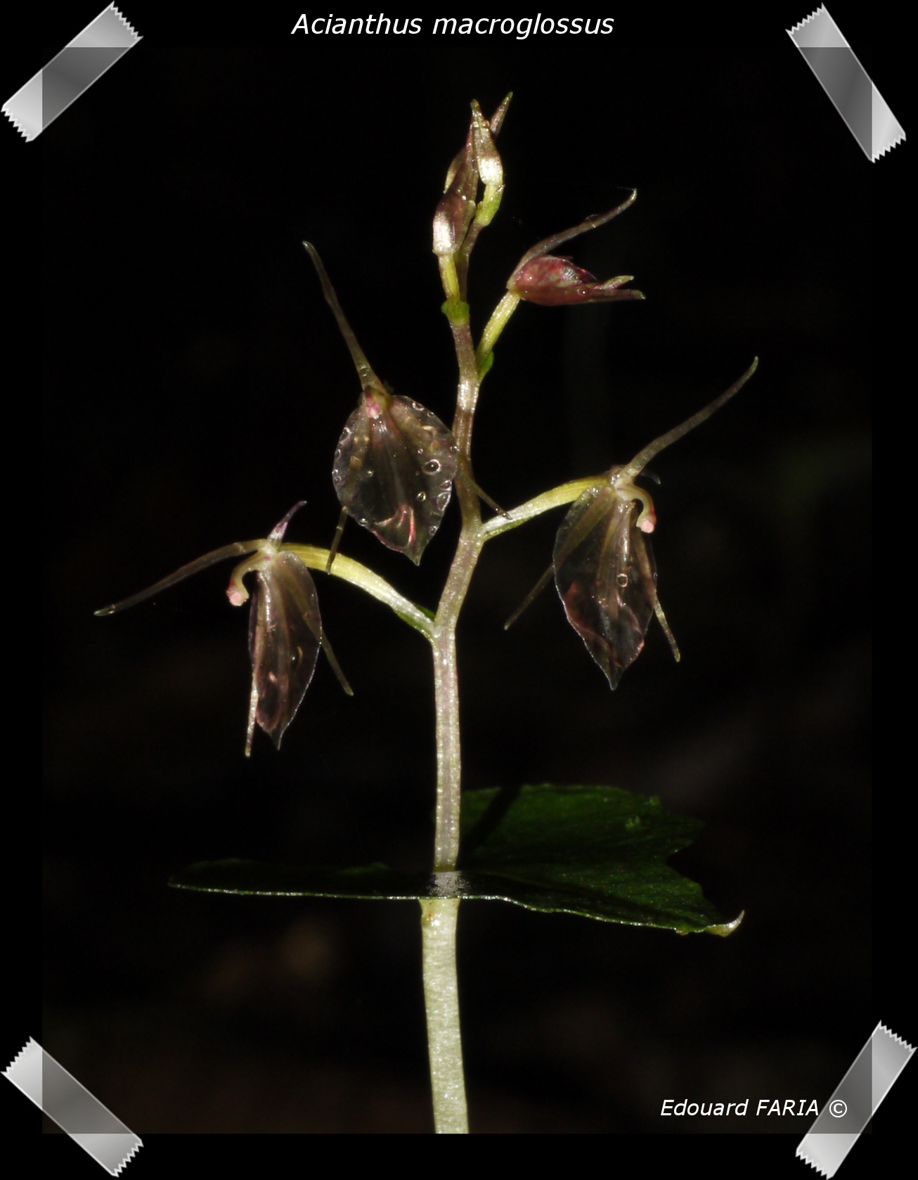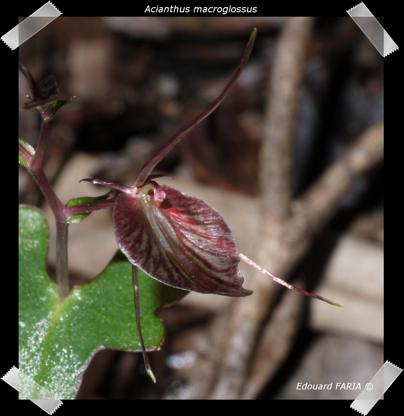 Synonyms Acianthella macroglossa (Schltr.) D.L.Jones & M.A.Clem. 2004; Acianthopsis macroglossa ( Schltr. ) Szlach. 2001 publ. 2002; Stigmatodactylus macroglossus (Schltr.) M.A.Clem. & D.L.Jones 2018; Univiscidiatus macroglossus ( Schltr. ) Szlach. 2001