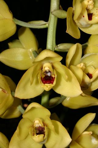 Found in Venezuela and Colombia at elevations around 1850 metres as a large sized, cool growing epiphyte with densely clustered, ovoid, moderately compressed, lightly ribbed pseudobulbs carrying 3, apical, plicate, broadly elliptic, acute, narrowing below into a petiolate base leaf that blooms in the spring on a 18" [45 cm] long, pendant, subdensely many flowered, racemose inflorescence arising on amture pseudobulb enveloped basally by slightly inflated, subimbricate, ovate, acute bracts