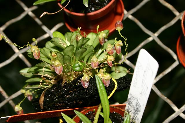 Found in Costa Rica and Panama in cloud forests at elevations of 1320 to 2500 meters as a miniature to just medium sized, cool to cold growing epiphyte with reed-like, strongly laterally compressed, flexuous stems carrying 2 to 7, elliptic, apically bilobed, coriaceous, basally clasping leaves that blooms on a terminal, sessile, occuring only once inflorescence carrying 1 to 3, simultaneously opening, resupinate, green, nocturnally fragrant flowers.
