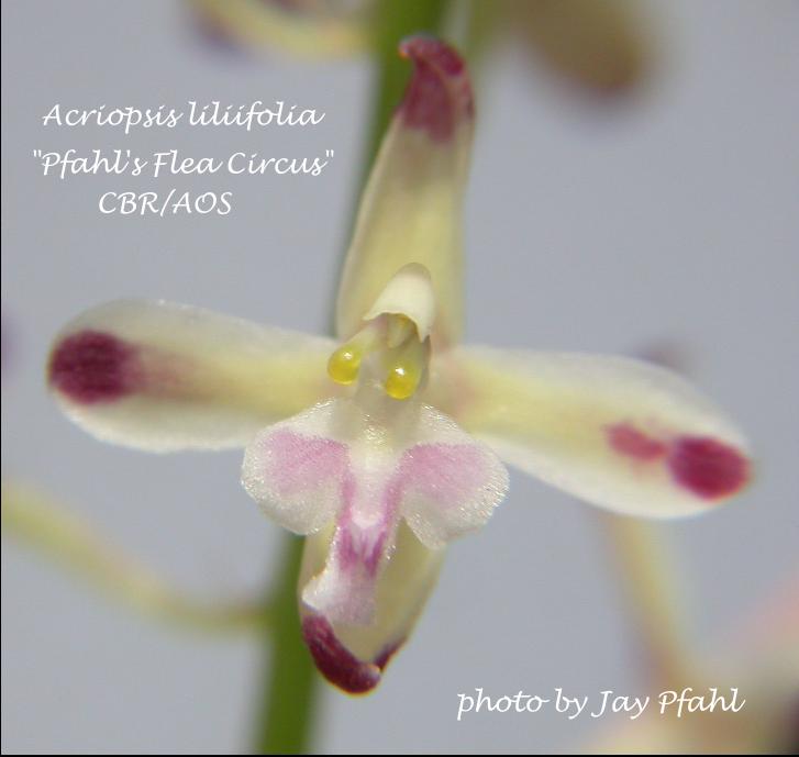 Bonplandia Rchb.f 1854 as A griffithii; Bonplandia Rchb.f 1857 as A javanica; Orchids of Burma Grant 1895/1995; Die Orchideen Von Java J.J.Sm. 1905 as Acriopsis javanica; Die Orchideen Von Java Figuren Atlas J.J.Smith 1908 as Acriopsis javanica drawing fide; Studies in the Family Orchidaceae Fascile 2 Ames 1908 as A philippinensis drawing fide; Orchidaceae of German New Guinea Schlechter 1913 as A nelsoniana drawing good; Die Orchideen Schlechter 1915 as A javanica; The Orchids Of Malaya Holtum 1953 as A javanica; AOS Bulletin Vol 28 No 4 1959; The Orchids of Thailand Seidenfaden & Smitinand 1961 as A javanica drawing fide; The Orchids of Thailand Seidenfaden & Smitinand 1965 corrections; Encylopedia of Cultivated Orchids 1965 as A javanica drawing fide ; AOS Bulletin Vol 47 No 6 1978; The Orchids of Papua New Guinea An Introduction Millar 1978 photo fide; The Complete Writings on Philippine Orchids Vol 1 Quisumbing 1981 as A javanica; Opera Botanica #72 Orchid Genera in Thailand XI Cymbidiaeae Seidenfaden 1983 drawing fide; Orchidiana Philippiniana Vol 1 Valmayor 1984; Orchid Monographs Vol 1 De Vogel 1986 as A javanica; Orchids of Java Comber 1990 as A javanica photo fide; The Orchids of the Solomon Islands and Bougainville Lewis & Cribb 1991 as A javanica drawing fide; Rudolf Schlechter Die Orchideen Band 1B lieferung 25 1520 - 1584 Brieger 1991 as A javanica drawing/photo fide; The Orchids of Penninsular Malaysia and Singapore Seidenfaden & Wood 1992 as A javanica drawing/photo fide; Manual of Cultivated Orchids Bechtel, Cribb, Laurent 1992 as A javanica; The Plants of Mount Kinabalu Vol 2 Orchids Wood Beaman & Beaman 1993 as A javanica; Phylogeny and Classification of the Orchid Family Dressler 1993 as A javanica photo fide; A Checklist of the Orchids of Borneo Wood & Cribb 1994 as A javanica; Identification of the Orchids [Orchidaceae Juss.] Vietnam Averyanov 1994 as A javanica; Manual of Orchids Stewart 1995 as A javanica; The Orchids of Penninsular Malaysia Teo 1995 as Acriopsis javanica; Living with Orchids in Sumatra Landau 1996 as Acriopsis javanica photo fide; Orchids of Papua New Guinea Millar 1999 as Acriopsis javanica photo fide; A Field Guide to the Wild Orchids of Thailand Vaddhanaphuti 2001 as A javanica photo fide; Rudolf Schlechter Die Orchideen Band 1C lieferung 44-45 pg 2763 - 2898 Brieger 2001; The A to Z of SE Asian Orchid Species O'Byrne 2001 A liliifolia photo fide; The Orchids of the Philippines Cootes 2001 as A javanica photo fide; Orchids of Sarawak Beeman & Wood 2001 photos fide; Orchids of Sarawak Beaman, Wood, Beaman etal 2001 as A liliifolia var auriculata; Botanica's Orchids Laurel Glenn 2002; Lindleyana Vol 17 No 1 2002; Orchids of Sumatra Comber 2001 photo fide; Orchids of Sarawak Beeman & Wood 2001 photos fide; Orchids of Bhutan Pearce & Cribb 2002 drawing fide; Flora Malesiana Orchids of the Philippines Vol I Agoo, Shuiteman and de Vogel 2003; AOS Bulletin Vol 73 No 8 2004 as A javanica photo fide; A field Guide to the Wild Orchids of Thailand Vaddhanaphuti 2005 photo fide; Flora Malesiana Orchids of New Guinea Vol III Shuiteman and de Vogel 2006; Orchids of India A Glimpse Misra 2007 drawing fide; Orchids of India A Glimpse Misra 2007 as A harae; Wild Orchids of the Cameron Highlands REACH 2009 photo fide; Wild Orchids of the Cameron Highlands REACH 2009 as A indica photo fide; The Orchids of Mount Kinabalu Vol 2 Wood, Beaman, Lamb, Chu Lun and Beaman 2011 drawing/photo fide; Wild Orchids of Penninsular Malaysia Ong, O'Byrne, Yong & Saw 2011 photo fide; Turczaninowia 16(4):26-46 NEW AND RARE ORCHIDS (ORCHIDACEAE) IN THE FLORA OF CAMBODIA AND LAOS Averyanov 2013;