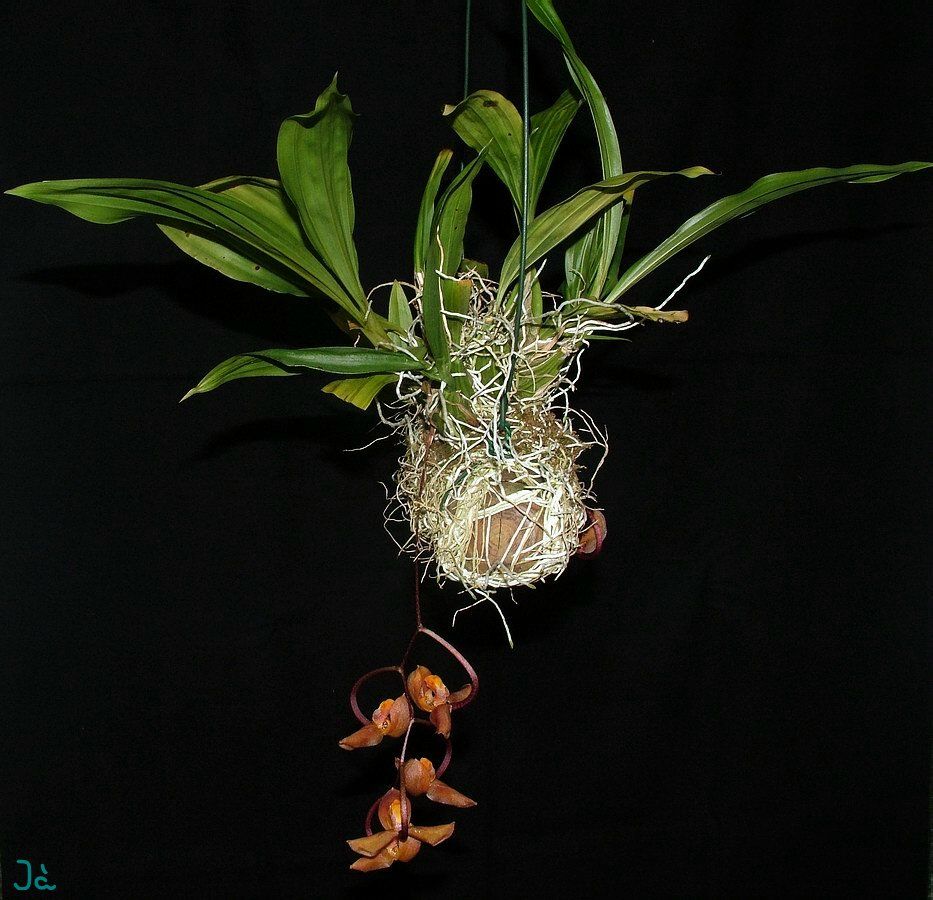 Found in Mexico, Guatemala, Honduras, Nicaragua and Costa Rica on trees in humid forests at altitudes up to 1800 meters as a medium sized, cool to warm growing, epiphytic species with ovoid-conical, slightly compressed, longitudinally ribbed, light green pseudobulbs carrying 2, apical, plicate, lanceolate to elliptic lanceolate, petiolate, acuminate leaves and blooms in the fall with waxy, fragrant flowers on a basal, to 12" [30 cm] long, pendant, loosely few flowered inflorescence.