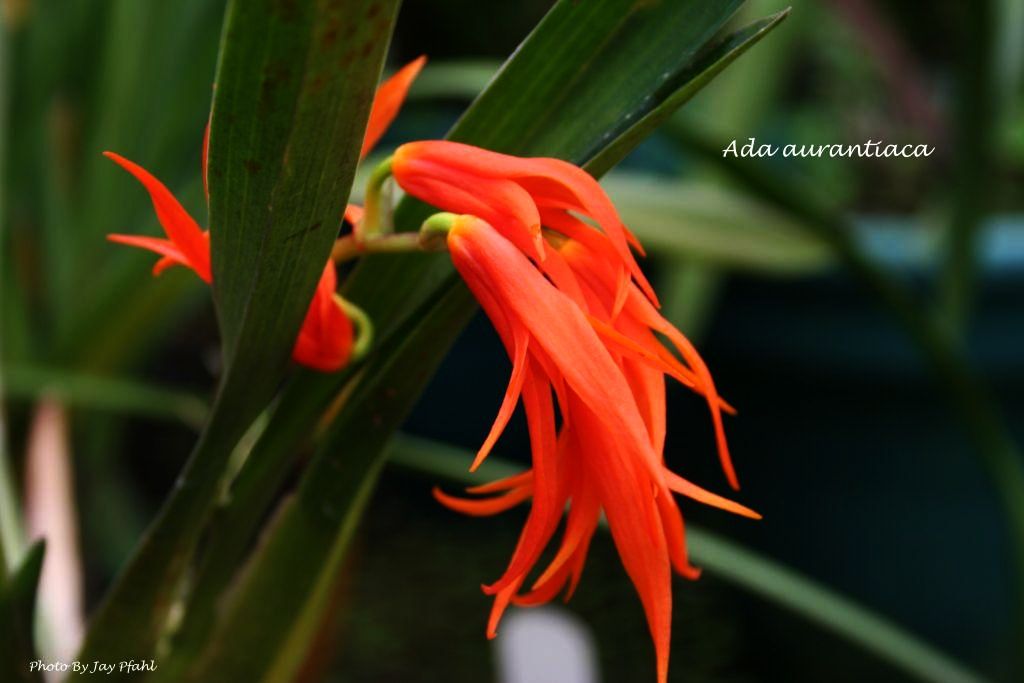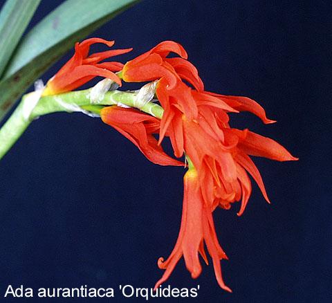 Synonyms Acropera aurantiaca (Lindl.) B.S.Williams 1896; Ada aurantiaca var. maculata Cogn. 1899; Ada cinnabarina (Linden ex Lindl.) N.H. Williams ?; Ada lehmannii Rolfe 1891; Brassia aurantiaca (Lindl.) M.W.Chase 2011; Brassia cinnabarina Linden ex Lindl. 1854; Mesospinidium aurantiacum (Lindl.) Rchb. f. 1864; Mesospinidium cinnabarinum (Linden ex Lindl.) Rchb. f. 1864; Oncidium cinnabarinum (Linden ex Lindl.) Rchb. f. 1864