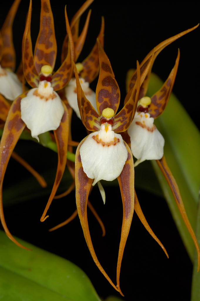 Found in Colombia at elevations of 1000 to 1800 meters as a medium sized, warm to cool growing epiphyte with elliptic, laterally compressed pseudobulbs carrying a single apical, oblong to strap shaped, acute, narrrowing below into the conduplicate, petiolate base leaf that blooms on a basal, racemose, to 12" [30 cm] long, several flowered inflorescence with a boat-shaped, acute, floral bract