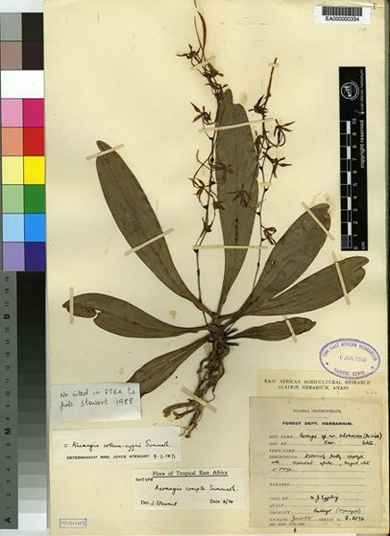 References W3 Tropicos, Kew Monocot list , IPNI ; AOS Bulletin Vol 37 No 11 1968 as A compta photo fide; Orchids of East Africa Piers 1968 as A compta; AOS Bulletin Vol 3 1970 photo as A compta photo fide; The Orchids of South Central Africa Williamson 1977 drawing/photo ok; Flora of Tropical East Africa Orchidaceae Part 3 Cribb 1989; African Orchids in The Wild and Cultivation La Croix 1997 drawing good; Orchid Digest Vol 70 #4 2006 photo fide; Angraecoid Orchids Stewart, Hermans, Campbell 2006