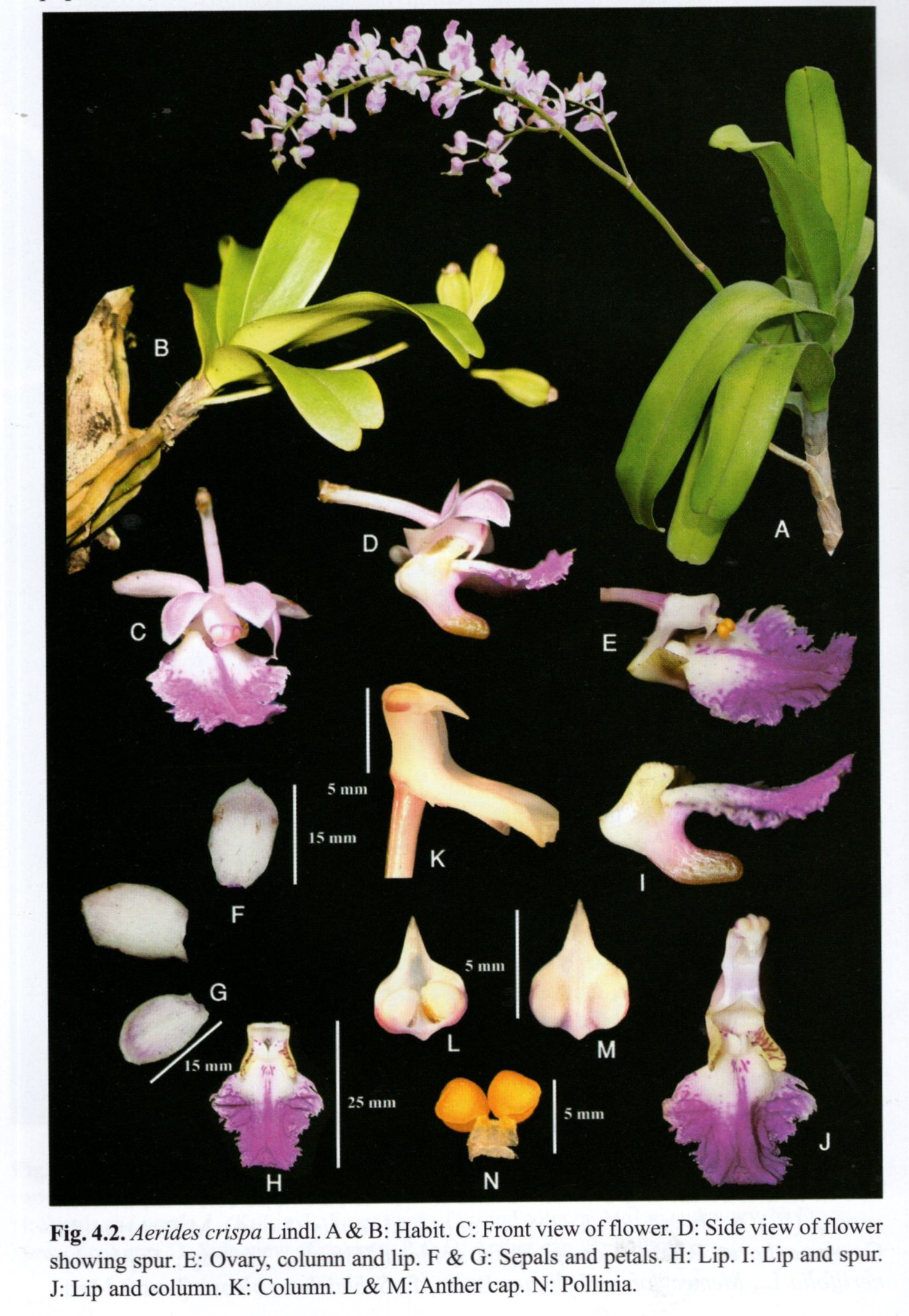 References W3 Tropicos, Kew Monocot list , IPNI ; Die Orchideen Schlechter 1915; Atlas des Orchidees Cultivees Constantin 1920 drawing fide; Encylopedia of Cultivated Orchids 1965 as A crispum; Indian Orchids: A Guide to Identification and Culture Vol 2 Pradhan 1979 drawing fide; AOS Bulletin Vol 51 NO 9 1982 photo fide; Orchids of Nilgiris Joseph 1987 drawing Rudolf Schlechter Die Orchideen Band 1B lieferung 19/20 1129 - 1264 Brieger 1988; AOS Bulletin Vol 61 No 9 1992 postage stamp fide; AOS Bulletin Vol 62 #6 1993 photo fide; Orchids of India A Glimpse Misra 2007; Genera Orchidacearum Vol 6 Epidendroideae Part 3 Pridgeon, Cribb, Chase and Rasmussen 2014; Lankesteriana Vol 18 [1]: 23–62 Jalal & Jayanth 2018 photo fide; Orchids of Maharashtra Jalal 2018 Photo fide;