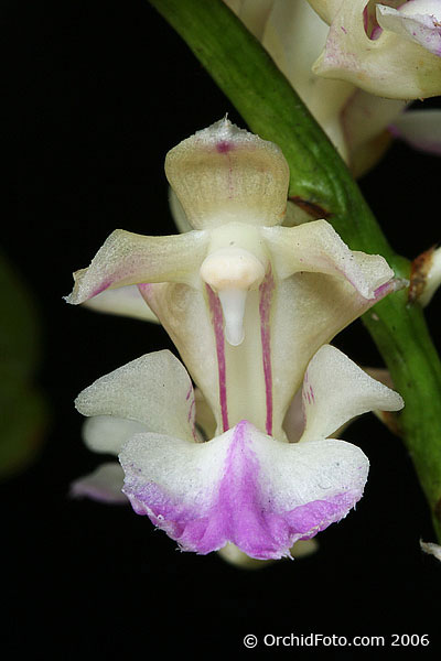 A medium to large sized, hot to warm growing species from Thailand, Vietnam and Cambodia occuring in evergreen, semi-deciduous and deciduous dry lowland forests at elevations of sealevel to 700 meters in partial shade, with ligulate, apically bilobed leaves that blooms in the spring and summer on a 16" [40 cm] long, dense, pendulous inflorescence carrying many [12 to 20], large, fleshy flowers that are quite fragrant.