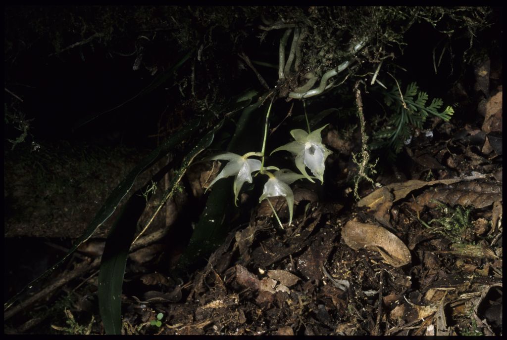 Found in central and south central Madagascar in montane forests at elevations of 1600 to 1800 meters as a small sized, cool growing epiphyte with a short stem carrying 4 to 5, ligulate, fleshy leaves that blooms in the summer on a short, hidden beneath the leaves, to 4" [10 cm] long, 3 to 4 flowered inflorescence