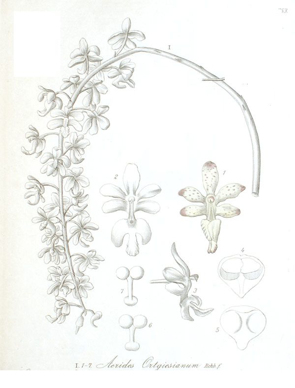 Aerides roebelenii Rchb. f. 1884 SECTION Falcata Drawing by © Rchb.f and The Swiss Orchid Foundation at the Jany Renz Herbaria Website