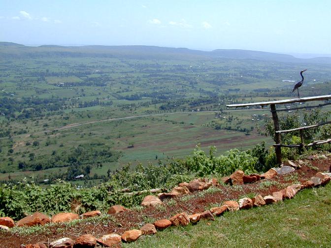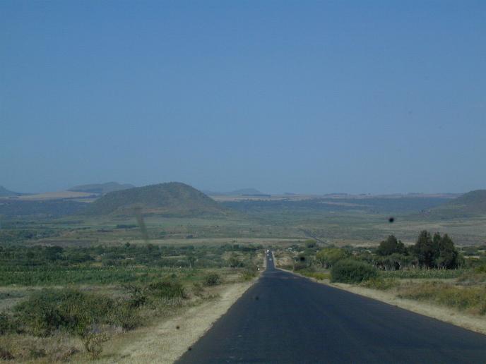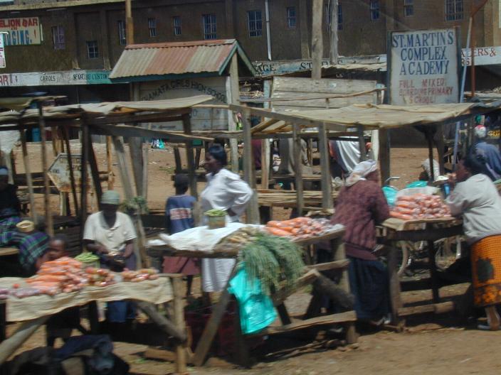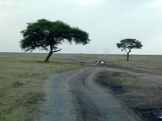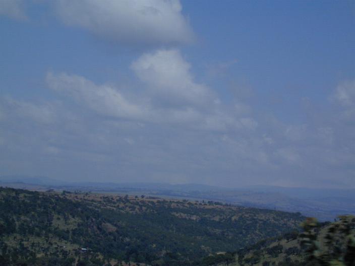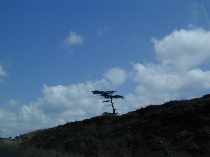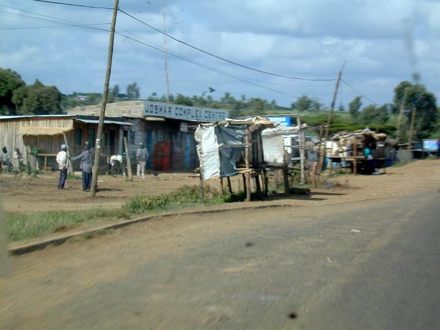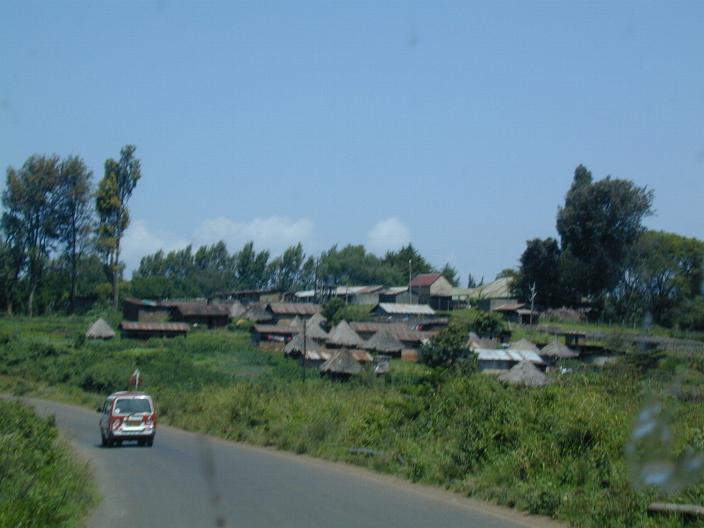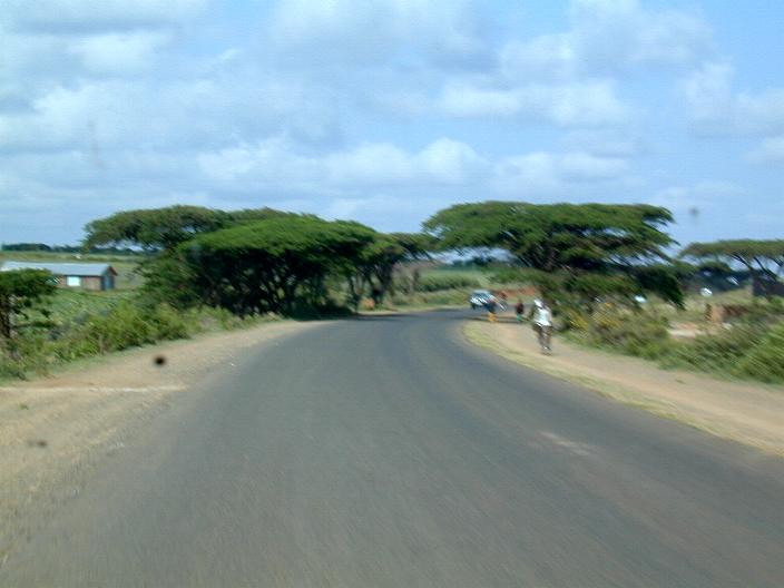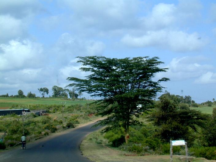The scenery changes fast in Kenya, and there are some wide open spaces, arid areas, Mountanous areas, Mount Kenya, Africa's 2nd tallest peak and Kenya's Tallest. There is a lot of roadside business and Acacias, Africa's most common tree [there are twenty or so species]. Here is a flat top acacia, Large spine Acacia Acacia