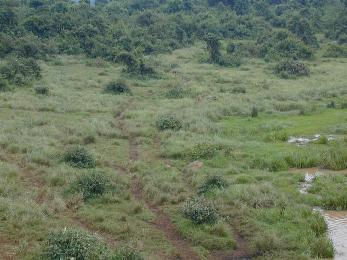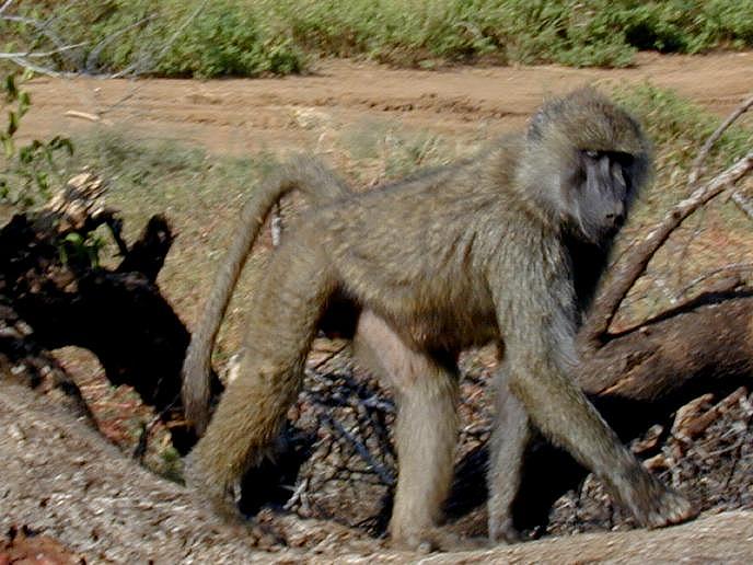 This bird, the Go Away Bird has one of the odder shapes of the African birds. After an hours drive we approached Mzima Springs. Our guide let us go off with the local park ranger to see Mzima Springs which is famous for it's crystal clear water and it's Hippos