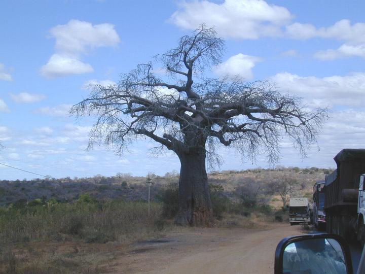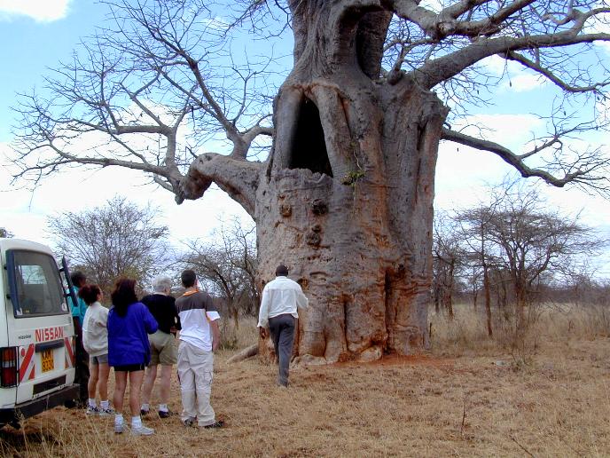 Today we met up with our new tour guide, Charles. We are on our way to a tent camp in west Tsavo. It will be hotter than it has been as we will be coming down in elevation. FOr us Florida people that wasa good thing as we were tired of being chilly. On the way we saw Baobab trees. They are huge and are commonly called the upside down tree as it looks as if their roots are in the air. They never have very many leaves, and they produce an edible fruit that has nuances of citrus. After a long hot drive we arrived at The entrance to West Tsavo National Park. Tsavo was forest years ago but the elephants which had the highest concentration in Africa, ate all the vegetation and when that ran out started knocking down the trees. Now Tsavo is a scrubby desert with few large trees. What large trees there are, are the baobab whiich are so large that not even a group of elephants could topple them. This park is immediately different than the others in that animals are much more skiitish here and it is difficult t get in close as we had in other perks. This is because there is still poaching going on here and the animals are much more wary.