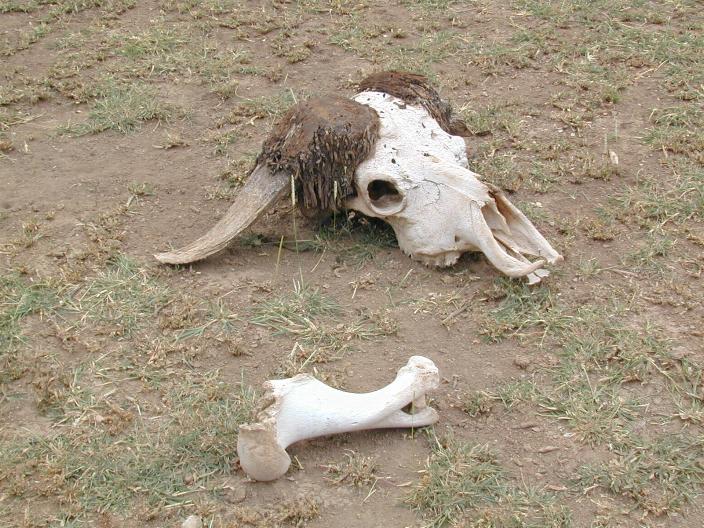 This baobab was a large tree during World War One and at that time Tanzania was German and Kenya was British. A german woman stole into Kenya and moved into this tree from were she sniped and killed many English before they figured out where she was and killed her. We continued on to an elephant graveyard here is my son Jason holding up part of an elephants leg. Notice the felled tree behind him. The rest of the herd visits regularly and trash trees in the area and many surmise that they are mourning the dead. This is the elephants skull, it died close to 10 years ago and the herd still visits. Continuing on our walk we came across the most dangerous animal in Africa The hippo . It has killed mnay more people than lions or snakes combined and they have the most eerie call, sort of like a giant mutant santa yelling HO HO HO! We came across a skeleton of a cape buffalo. AS we left Tsavo to return to Nairobi for our flight to london, this elephant decided to run up and try to attack the van. It was time to leave.