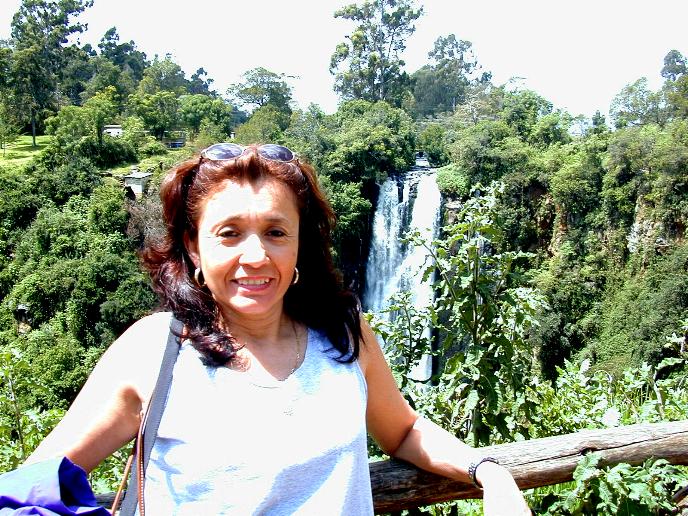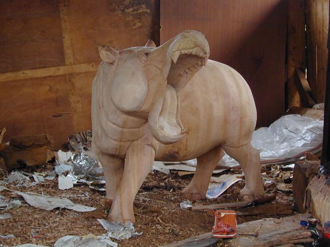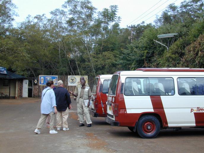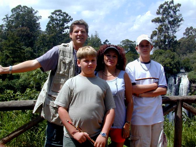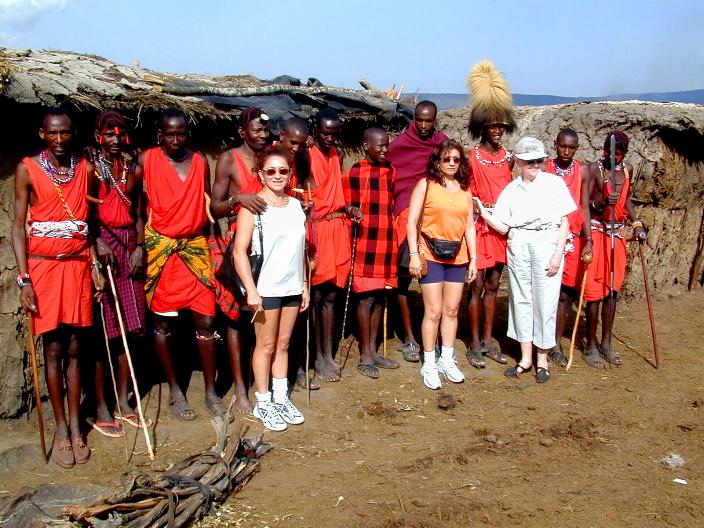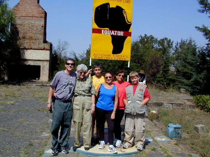 My sons wanted to go on another cruise [ho hum] and my wife wanted to go anywhere without a jungle and my mother wanted us all to go together. After much debate we decide to go to Kenya on a photo safari. My mother has been there 3 times before with my father when he was alive and she thought we would all enjoy it so we boarded a plane in Key west to New York where we got a jet to London and then Kenya. 18 hours later we arrived in Nairobi We arrived exausted but excited to be at our destination. We met up with our tour guide and he took us on a day trip to sites in the big city. The next day we started our safari [in swahili means long arduous journey] and our first stop was Thika Falls, that is my wife, mother and sister in law. Notice the coats, it was cool almost everywhere we went. Most of the Kenyan parks are at higher elevations so even though we were within 50 miles of the Equator it was cooler than our Florida tootsies were used to. In the photo are myself, my mother Floradelle, my oldest son Jason, then my wife Carmenza, her sister Vilma and my youngest Andres.We drove for three hours with our only stop being a tourist craft mart where there are many wood carvings.