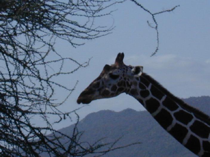 Our first day in Samburu ended with a beautiful sunset. We prepared for our excellent dinner as the light faded away over the Samburu river. Our cabin faced the river and they fed a crocodile later that night so that it would come right up to us. It was about 8' long and quite ugly. It made a lot of noise as it broke the hambone of the handout that it received.