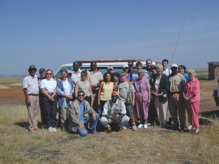 We are on our way to the airport to get back to Nairobi and got in a quick picture of Amos and the family. He was telling Vilma that he wanted to have her as his second wife. We assembled the entire group for a farewell photo. Well we are at an airport, where is the security? Where is the tarmac? Where is the airport? Where is the airport bar? Oh No!!!! That is the terminal and Duty Free store. Is there a restroom? It is the little building on the left. OK I am more at ease now that I see that this airport has all the modern equipment. Here comes the plane We go through intense airport security. Remember Al Qaida was here first, two years before 9/11.