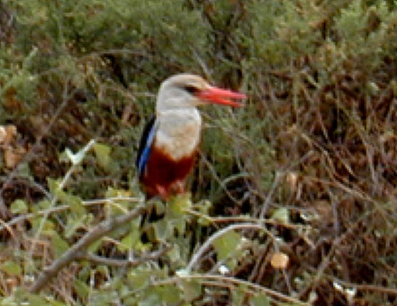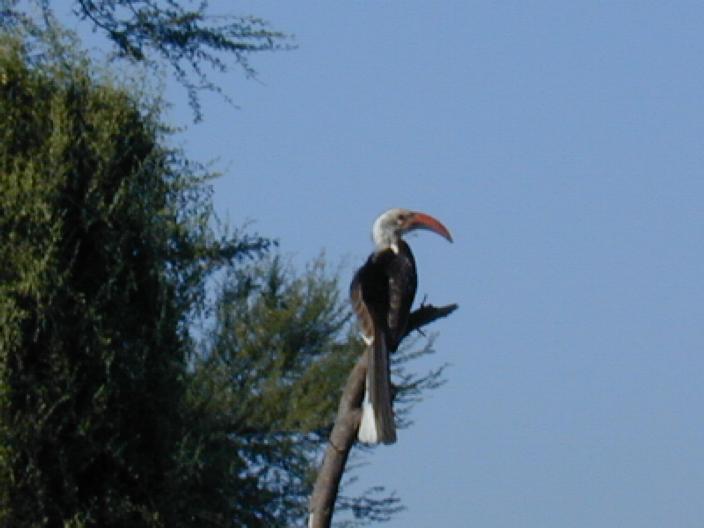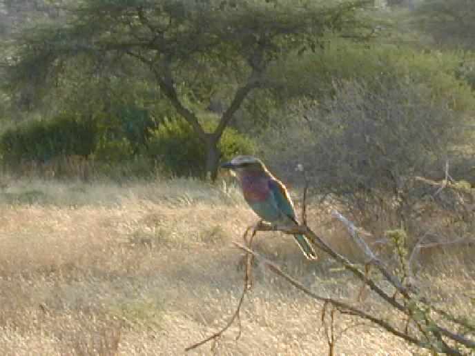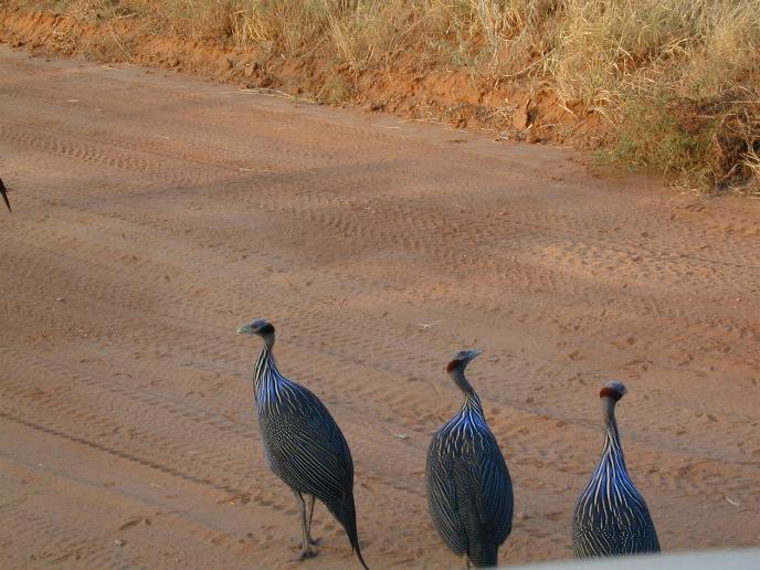 A few moments later we came across a group of guinea fowl, one of the prettiest food animals I have ever seen. Birds are everywhere here, and many are quite pretty, here is a Lilac-Breasted Roller, a medium sized songbird. The Grey Headed Kingfisher is less than 4" tall and when I said "so it eats fish" Amos the driver said "no it eats bugs". Here is view of another Kingfisher that I am not sure of which one. The weaverbird is a group of songbirds like warblers are to us. They move around in small low flying, flitting packs and nest the same way making quite a colony in a tree. If you have seen the Lion King then you are familiar with this fellow. He is Zazu the king's advisor. Here in Africa he is know as a Hornbill. Our Kenyan guide Amos who is a Kikuyu, a tribe from the Central Highlands, said that it was not to be confused with a "hornybill" which is the African common name for Bill Clinton.