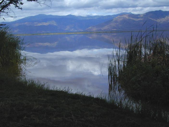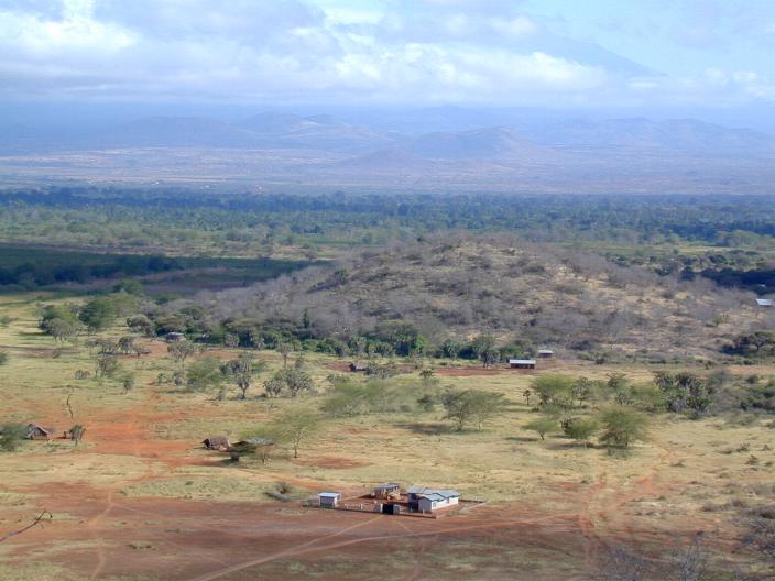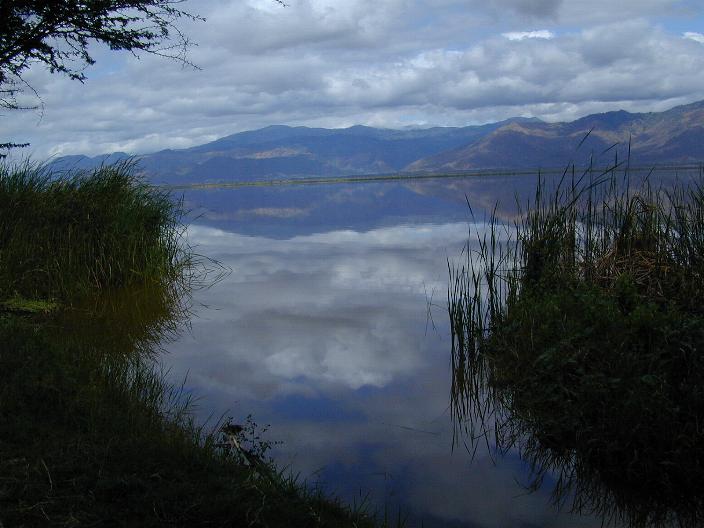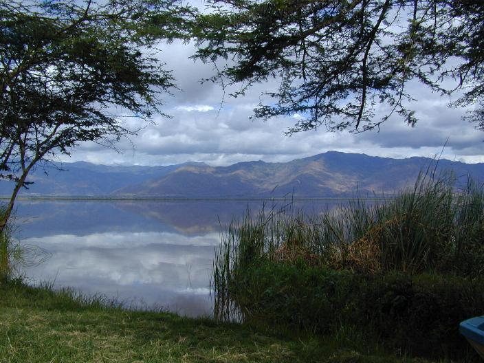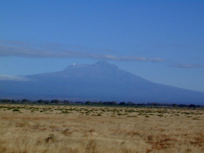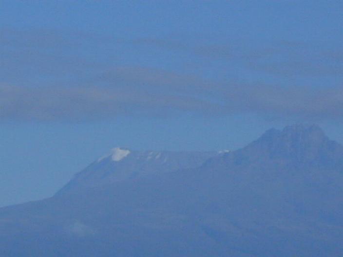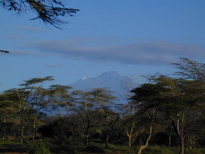 We arrived at our tent camp where we will stay for three days. It is different to be walking around instead of in a car. We got up early the next morning to see Mt Kilamanjaro out for our enjoyment. This view is from Kenya and the snow covered peak is the actual mountain the other is a foothill in the way. Most pictures of this mountain are taken from the Tanzanian side and from there it has the more well know volcano shape. WE continued along to the abandoned farm of the Grigon, a white farmer who built a house high up on a small butte so that he could see all his property below. He was a target of the Mau-Mau a revolutionary group from the fifties and sixties that wished to free Kenya from white rule. The house had many secret hiding places where the Grigon could hide from the Mau-Mau. We continued on to Lake Jipa which defines the border between Kenya and Tanzania. It was so tranquil and can you believe the sky and clouds? Here is a shot of the vehicle we had, notice the pop up top that allows you to view the animals withoput leaving the vehicle. The tsavo parks are said to have red elephants, but it is due to the dust that they throw on there bodies to keep cool, otherwise they are teh same as the other elephants that we have seen.