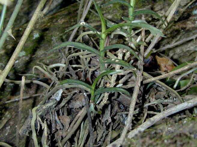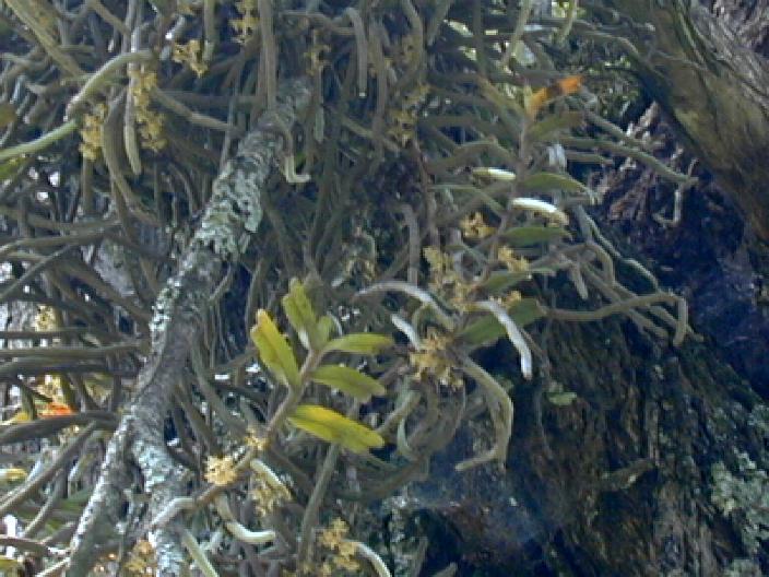 Kenya is a very large country with many types of landscapes, from tropical jungles to broad savannahs, to deserts to mountains and it is a long way in between each one. We went to several national parks and 4 private preserves. Each day we ate at a different 5 star hotel, resort or golf course. The first day we ate at the Abadares Golf Resort. I ate quick and went for a walk and discovered my first orchid [an Aerangis] growing in brush at the edge of the 4th hole. Checking out the brush I noticed another orchid which I think is Rangeris amanensis. As I came out of the woods I discovered my first wild african animal, a warthog. It is different encountering a beast in the wild than at a zoo, he was ten feet away and I was not sure how I should react. I backed up and started to make my way back to the club when I came upon a troop of baboons. This was a disconcerting moment as they ran up to me making grunting noises in a group and I dedcided to keep backing up to get to the clubhouse.
