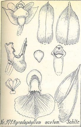 Agrostophyllum acutum Schltr. 1912 SECTION Agrostophyllum Drawing by Schlechter and The Swiss Orchid Foundation at the Jany Renz Herbaria Website