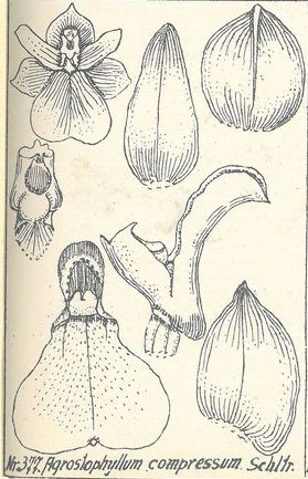 Agrostophyllum compressum Schltr. 1912 SECTION Agrostophyllum Drawing by Schlechter and The Swiss Orchid Foundation at the Jany Renz Herbaria Website