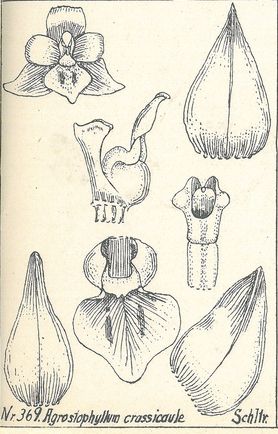 Agrostophyllum crassicaule Schltr. 1912 SECTION Agrostophyllum Drawing by Schlechter and The Swiss Orchid Foundation at the Jany Renz Herbaria Website