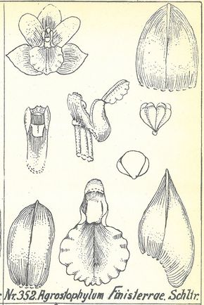 Agrostophyllum finisterrae Schltr. 1912 SECTION Dolichodesme Photo by © J B Comber and The Swiss Orchid Foundation at the Jany Renz Herbaria Website