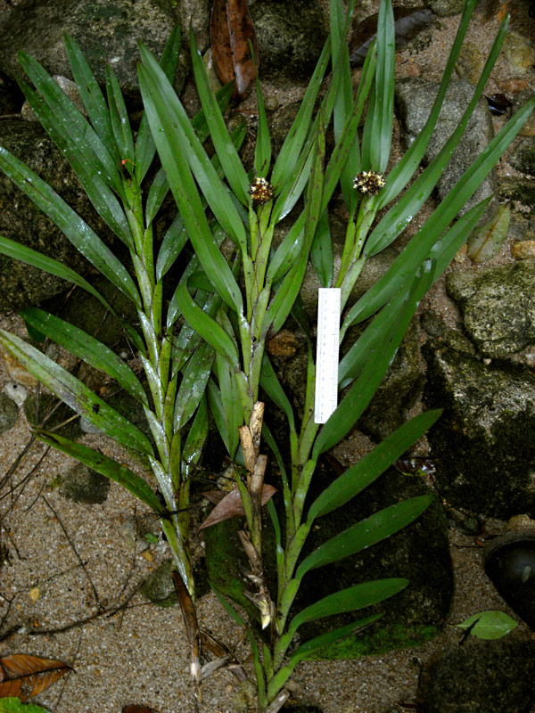 Found in Java, Sumatra and Borneo in hill forests at elevations of 700 to 1700 meters as a medium to large sized, warm to cool growing epiphyte with very compressed, elongate stems carrying many, larger in the apical half, obtuse apically leaves that blooms in the summer on 4 to 6 flowered inflorescence held in a capitate globe.
