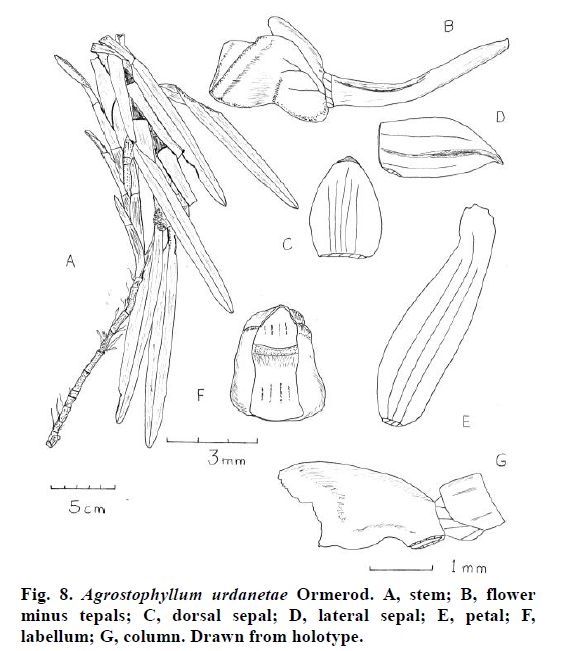 Agrostophyllum urdanetae Ormerod 2014 SECTION Agrostophyllum TYPE Drawing by © Paul Ormerod and The Taiwania Website
