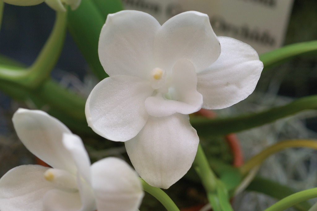 A newly discovered and described, miniature, cool to warm growing species from the Philippines on the edges of rainforests [Central Luzon Mountains] at elevations of 1800 to 2200 meters that has an albinistic floral appearance to the type species and also seems to grow cooler. This species is a monopodial, erect, orchid with leathery, linear to obovate, unequally bilobed apically leaves and blooms in the winter and spring on up to 3, axillary, short inflorescence with up to 5 nocturnally fragrant flowers