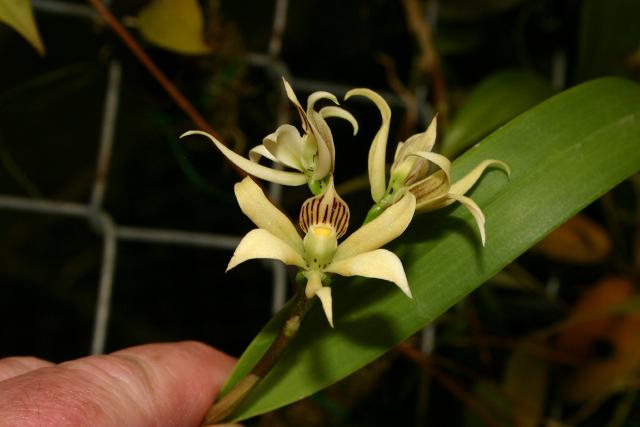 The major difference here between A aemulum and A fragrans is that A aemulum blooms on a newly maturing, ovoid [not tapered] pseudobulb
