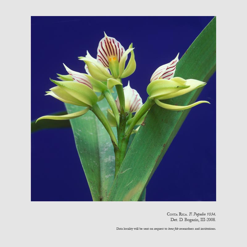 Found from Mexico, Guatemala, Belize, El Salvador, Honduras Nicaragua, Costa Rica, Panama, Colombia and Venezuela as a medium sized, hot to warm growing, cockleshell epiphyte or lithophyte from open oak and deciduous forests at elevations of sealevel to 1200 [3350?] meters with gray green, subcylindric to ovoid pseudobulbs subtended by bracts with 2 to 3, subcoriaceous, narrowly elliptic leaves that blooms in the midwinter till early summer on an apical, 2 to 8 flowered, to 4" [to 10 cm] long, racemose inflorescence subtended by a basal sheath, that is shorter than the leaves and arises on a newly mature pseudobulb with fleshy, fragrant, nonresupinate flowers.