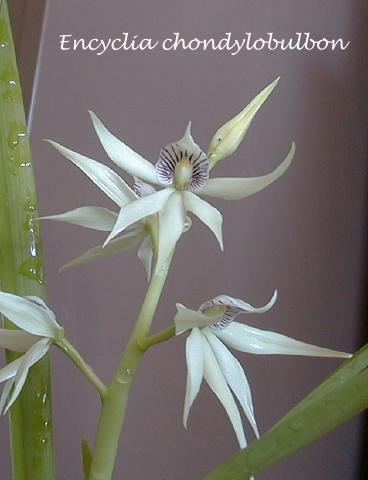 Synonyms Encyclia chondylobulbon (A. Rich. & Galeotti) Dressler & G.E. Pollard 1971 ; *Epidendrum chondylobulbon A. Rich. & Galeotti 1845; Hormidium chondylobulbon [Rich & Gal.] Breiger 1977; Prosthechea chondylobulbon (A. Rich. & Galeotti) W. E. Higgins 1997