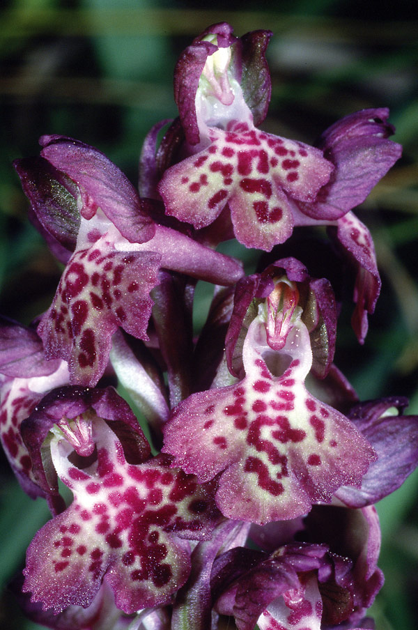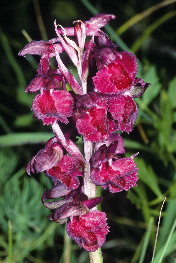 Found in France, Switzerland, Austria, and Albania, as a cold growing terrestrial that is a natural hybrid between A coriophora and A morio and blooms in the later spring on an erect, terminal, several flowered inflorescence