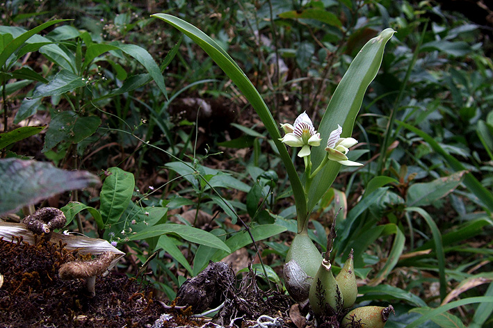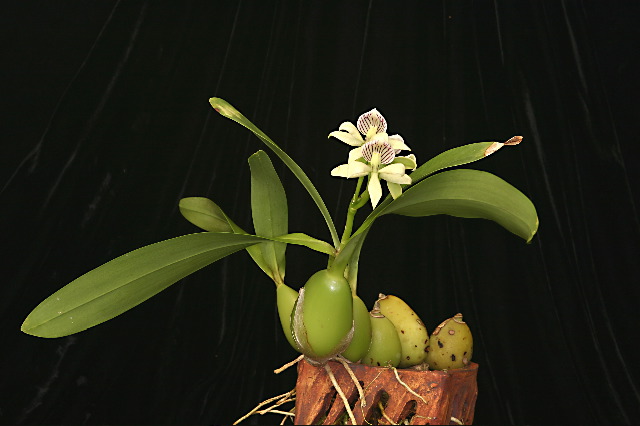Found only in Costa Rica and Panama at elevations of 700 to 1100 meters as a medium sized, warm to cool growing epiphyte or terrestrial with spindle-shaped to ovoid, compressed pseudobulbs carrying two, apical, erect, elliptic, obtuse leaves that blooms in the spring on a 6" [15 cm] long, 2 to 7 flowered inflorescence carrying non-resupinate flowers