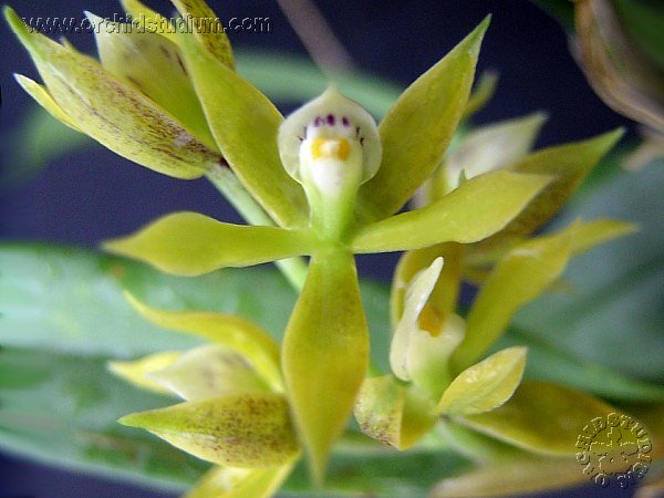Found in Espirito Santo Brazil in primary forests in bright light at elevations around 500 to 1200 meters as a miniature sized, warm to cool growing epiphtye with .8" [2 cm] between each ovoid, compressed pseudobulb carrying 2, apical, erect, stiff leaves that blooms in the late spring and early summer on a terminal, erect, .8 to 1.6" [2 to 4 cm] long, to 6 flowered inflorescence carrying non-resupinate flowers
