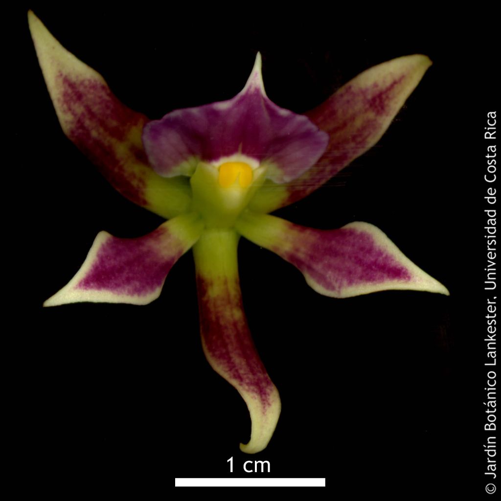 Found in Costa Rica, Jamaica, and Panama in premontane rainforests in open canopies at elevations of 900 to 2100 meters as a medium sized, warm to cold growing epiphyte with cylindric to narrowly ovoid, furrowed with age psuedobulbs enveloped almost completely in youth by several, imbricate, scarious sheaths and carrying a single, apical, elliptic-lanceolate, acute, basally clasping leaf and blooms on a terminal, few [3 to 4] flowered inflorescence arising from a spathe on a newly matured pseudobulb occurring in the fall through spring with non-resupinate flowers.