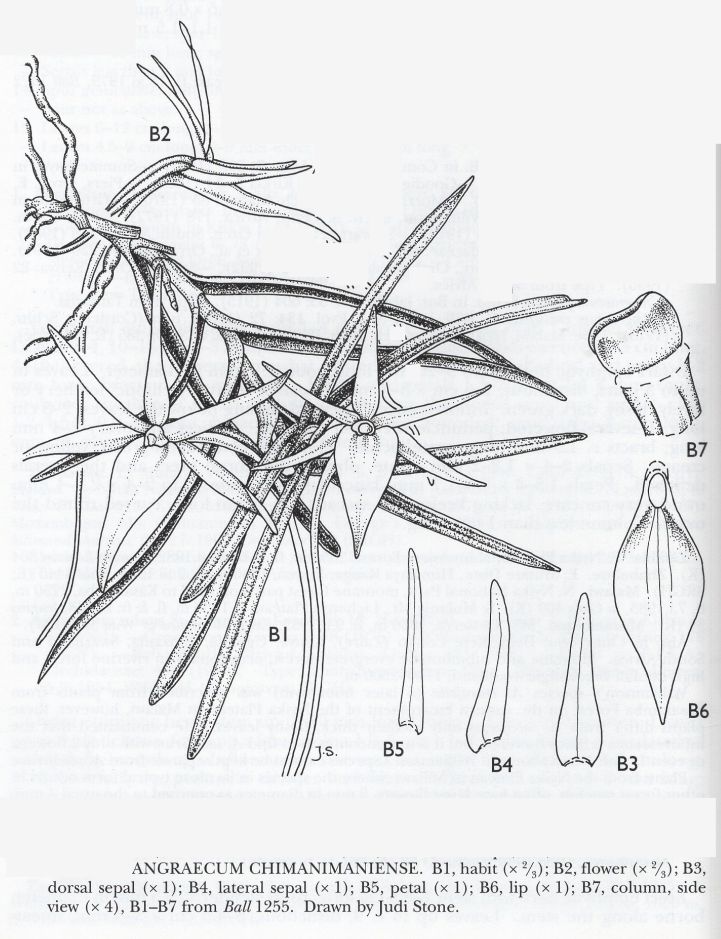 Angraecum chimanimaniense G.Will. 1996 SECTION Perrierangraecum Drawing by © Judi Stone