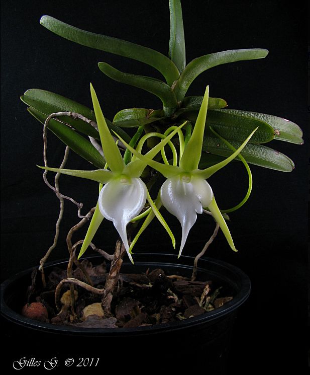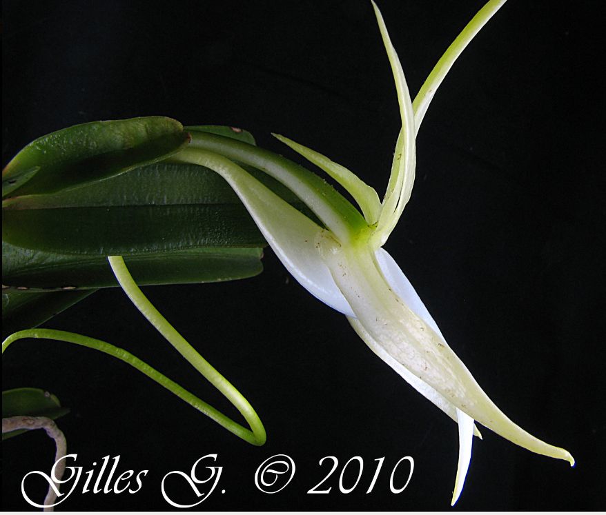 Side View of Flower Photos by © Gilles Grunenwald and The Angraecum Orchid Blog Common Name Doll's Angraecum [An orchid Enthusiast from Germany current]