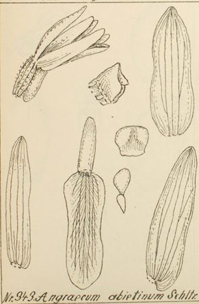 References W3 Tropicos, Kew Monocot list , IPNI ; Flora of Madagascar Perrier 1939/81 as A abietinum; Flora of Madagascar Perrier 1939/81 as A finetianum drawing fide; An Introduction to the Cultivated Angraecoid Orchids Of Madagascar Hillerman & Holst 1986; Angraecoid Orchids Stewart, Hermans, Campbell 2006; Orchids of Madagascar Hermans, Du Puy, Cribb & Bosser 2007 photo fide; Field Guide to AOS Bulletin Vol 83 #9 2014 photo fide; the Orchids of Madagascar Cribb & Hermans 2009; Les Orchidees de Madagascar Bosser & Lecoufle 2015 photo fide; A la Recherche des Orchidees de Madagascar Hervouet 2018 as Pectinariella humblotiana photo fide;