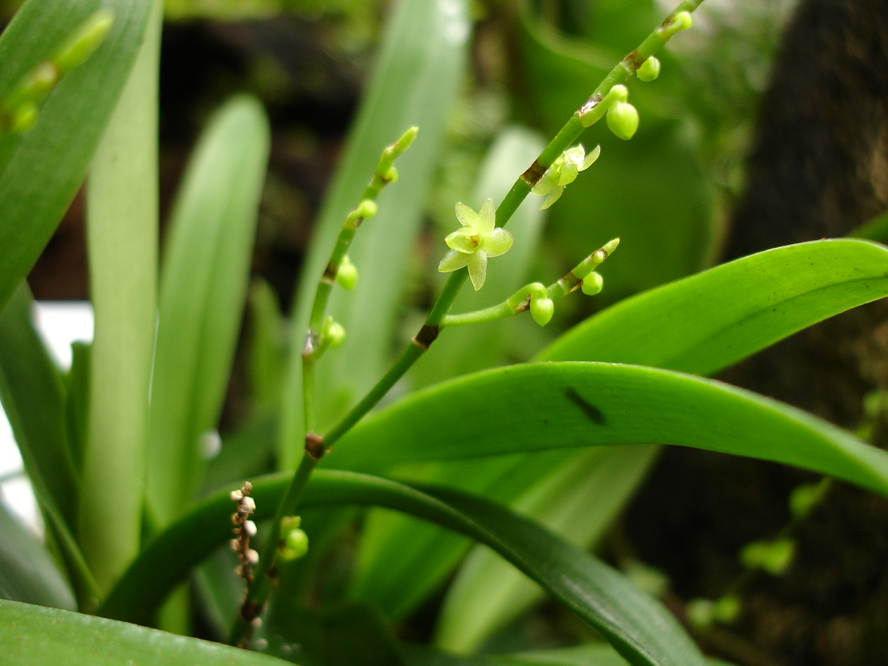 CAUTION I have no way of personally verifying this determination so please use with caution!!! The photographed plant ahs a branched many flowered inflorescence, according to the only reference that I have [Angraecoid Orchids Stewart, Hermans and Campbell 2006] for this species it should be a simple, 2 to 3 flowered inflorescence. I have no drawing or other method of identifying this species so PLEASE USE WITH CAUTION!