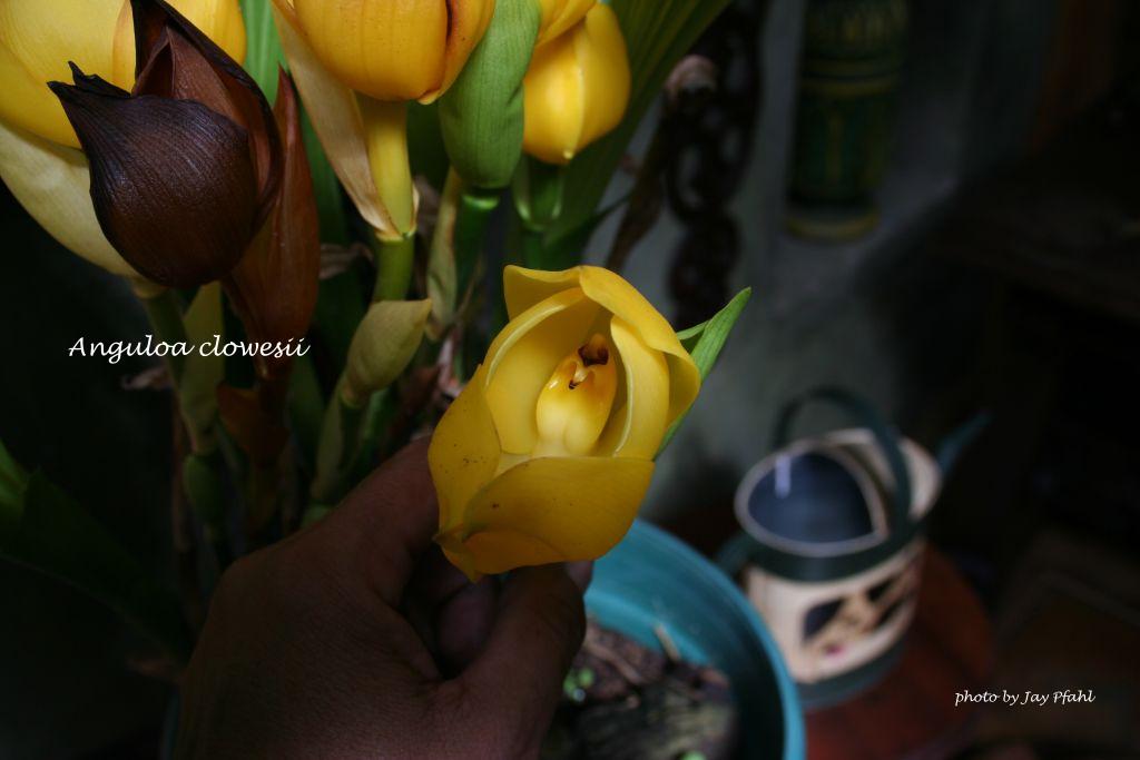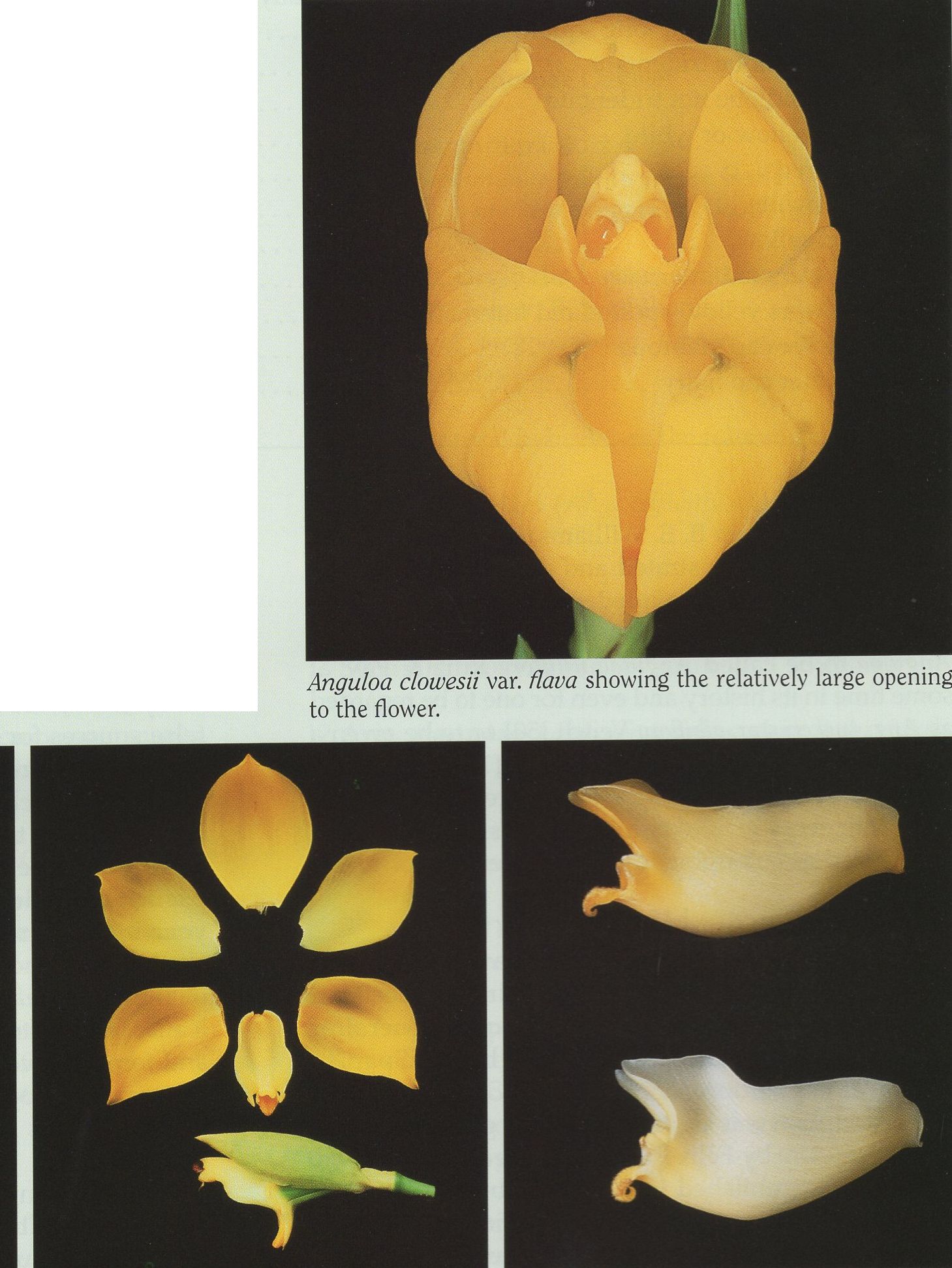 Synonyms Anguloa clowesii var. aurea A.DC. ex Oakeley 1999; Anguloa clowesii var. flava A.DC. 1847