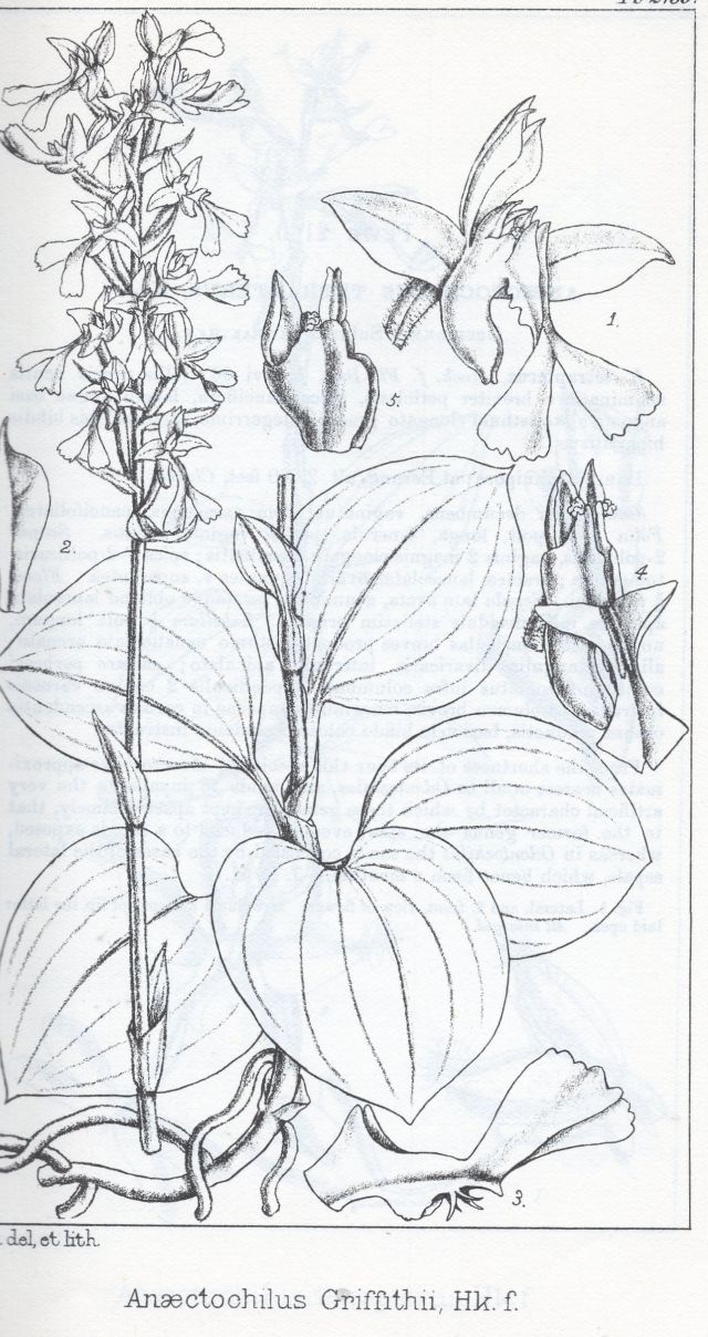 References W3 Tropicos, Kew Monocot list , IPNI ; Icones Plantarum Vol 22 Hooker 1893 as Anoectochilus griffithii drawing hmm; The Orchids of Burma Grant 1895/95 Indian Orchids; Guide to Identification and Culture Pradhan 1976 as A griffithii drawing good; The Orchids of Burma Grant 1895/95 Indian Orchids; Guide to Identification and Culture Pradhan 1976 drawing photo fide; Identification of the Orchids [Orchidaceae Juss.] Vietnam Averyanov 1994 as A tridentatus; The Illustrated Encyclopedia of Orchids Pridgeon 1992; Orchid Digest Vol 65 #1 2001 photo fide; Orchids of Bhutan Pearce & Cribb 2002; 100 Sikkim Himalayan Orchids Pradhan 2005 leaves only photo hmm; Orchids of India A Glimpse Misra 2007 photo not = L discolor; Orchids of India A Glimpse Misra 2007 as A griffithii; Orchids of Vietnam, Illustrated survey, part 1 Averyanov 2008?; AOS Bulletin vol 78 No 11 2009 photo fide; Identification of the Orchids [Orchidaceae Juss.] Vietnam Averyanov 1994 as A chapaensis; Flora of China Vol 25 Zhengyi, Raven & Deyuan 2009 as A chapaensis; The Wild Orchids in Yunnan Xu Xiang Ye & Liu 2010 photo as A chapaensis plant only ok; A review on Spiranthoideae genera in Arunachal Pradesh Bulletin of Arunachal Forest Research 27 (1&2) : 1-33, Rao 2011; A Century of New Orchid Records in Bhutan Royal Government of Bhutan 2017 drawing/photo fide; Atlas of Native Orchids of China Vol 1 Jin Xiaohua, Li Jianwu and Ye Deping 2019 photo good;