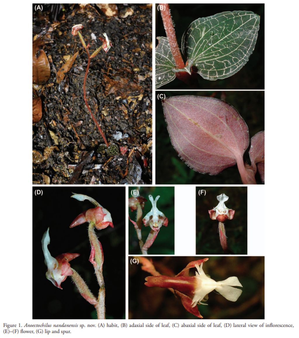 Photos by © Xin-Cheng Qu , Yun-Feng Huang , Hui-Zhe Feng and Ren-Chuan Hu courtesy of Anoectochilus nandanensis sp. nov. (Orchidaceae) from northern Guangxi, China Xin-Cheng Qu , Yun-Feng Huang , Hui-Zhe Feng and Ren-Chuan Hu 2015