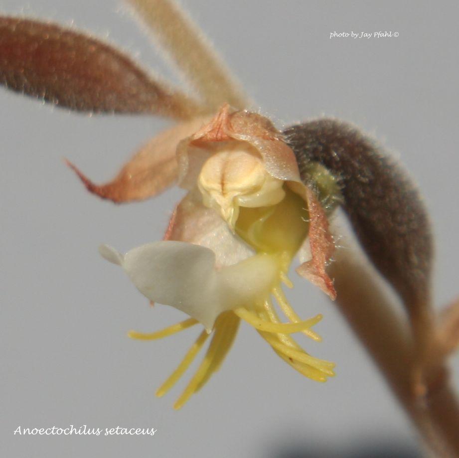 Found in Yunnan China, Assam India, Bangladesh, eastern Himalayas, Nepal, western Himalayas, Sri Lanka, Myanmar, Thailand, Vietnam, Sumatra and Java in broadleafed, evergreen, humid primary forests in soils dampened by mists and splash along steep watercourses at elevations of 1200 to 1800 meters as a creeping, ascending, cool growing terrestrial orchid in rich humus in damp crevasses with subcordate to ovate-acute, velvety, dark lime-green reticulated with gold leaves that are purple black on the underside that blooms on a 10" [25 cm] long, several [5] flowered inflorescence with successively opening flowers occuring in the summer.