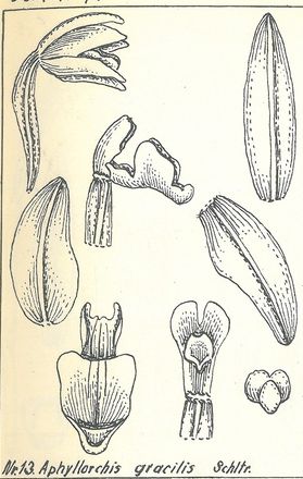 ~ Aphyllorchis gracilis Schltr. 1911 - See Aphyllorchis pallida Blume 1825 Drawing by © Seidenfaden and The Swiss Orchid Foundation at the Jany Renz Herbaria Website