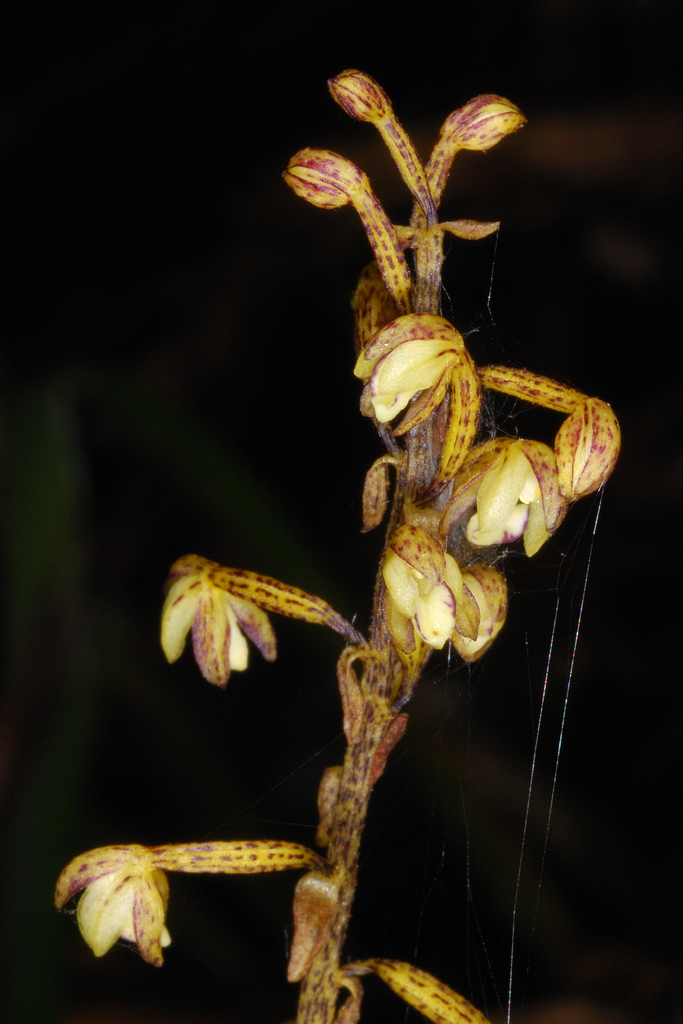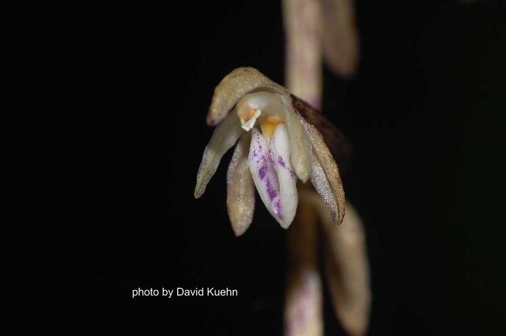 Found in Thailand, Malaysia, Borneo, Java, Sumatra, the Philippines and Vietnam at elevations around 200 to 1600 meters as a small to medium sized, hot to cool growing, mycoheterotrophic terrestrial with erect, slender stems enveloped by several short, purple streaked sheaths that blooms in the summer on an erect, 8 to 20" [20 to 50 cm] long, rachis 2.8 to 8" [7 to 20 cm] long, few flowered inflorescence.