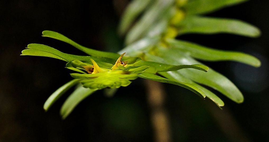 Found in Borneo and Sumatra in hill forests at elevations of 800 to 900 meters as a medium sized, warm growing, sympodial, semi-pendulous epiphyte with a freely branching stem carrying oblong, sessile, unequal, obtuse apically, shortly apiculate leaves that blooms on a terminal, 1 to 1.4" [2.5 to 3.5 cm] long, to 8 flowered inflorescence